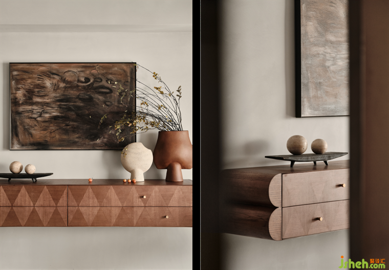 在木頭、地毯和棉麻的協(xié)奏曲中,富有韻律感的幾何形體,映照了人們對(duì)于美學(xué)思考中最本質(zhì)的秩序需求.每一個(gè)醒來(lái)的清晨,一室盈盈間,生活的美好底色被喚醒.