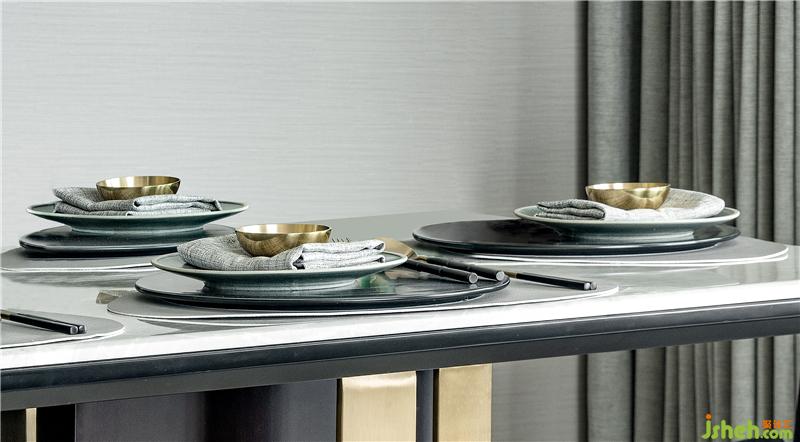 項(xiàng)目以沈著內(nèi)斂、具備厚重感的棕色木材、氤氳著斑駁紋理的大理石為地面,色彩的厚重感在很好地呼應(yīng)了華貴又低調(diào)內(nèi)斂的項(xiàng)目調(diào)性,同時跟空間的淡色系、水綠色形成對比,加強(qiáng)空間視覺層次感。