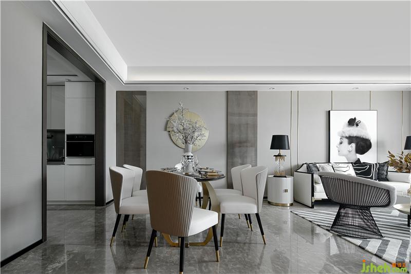 樣板間緊靠珠江,從樣板房的窗外望去,江對岸就是澳門。由于地理位置特殊,因此在思考這次的珠海裝修設(shè)計軟裝設(shè)計方向時,設(shè)計師希望室內(nèi)的窗戶不是唯一的室內(nèi)外聯(lián)結(jié),這種聯(lián)結(jié)可以人為地再次被加深,并以此加深內(nèi)外空間從地理到精神上的關(guān)系。設(shè)計師受到珠江江水波紋形態(tài)的啟發(fā),把波紋中的線條形態(tài)提取出來,珠海裝修設(shè)計運用到內(nèi)部空間中,線條從內(nèi)部蔓延到的外部,所以線條的運用是此次設(shè)計的重點。