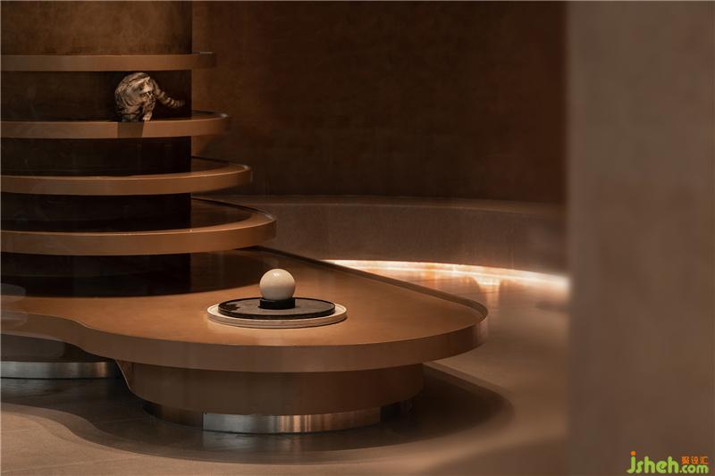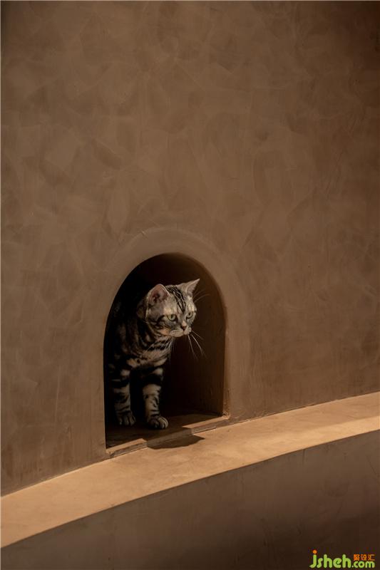 洞穴式的設(shè)計靈感,來源于設(shè)計師對貓的深入觀察,貓咪與生俱來的身體機(jī)能和心理映射,廣州餐廳設(shè)計讓貓咪在洞穴式的狹窄空間容易獲得極大的安全感,另一方面,貓咪的眼球結(jié)構(gòu),對于洞穴外的動態(tài)物體和光影變化格外敏銳。