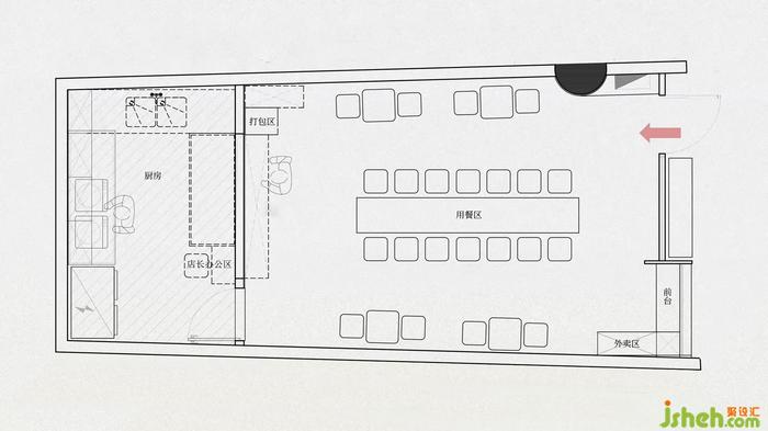 候客區(qū)的設(shè)計(jì),既不占用公共通道,也為往來(lái)的行人和排隊(duì)的客人提供一個(gè)駐足小歇的座位。桌子的擺放,則可以解放消費(fèi)者提著眾多購(gòu)物袋的雙手。