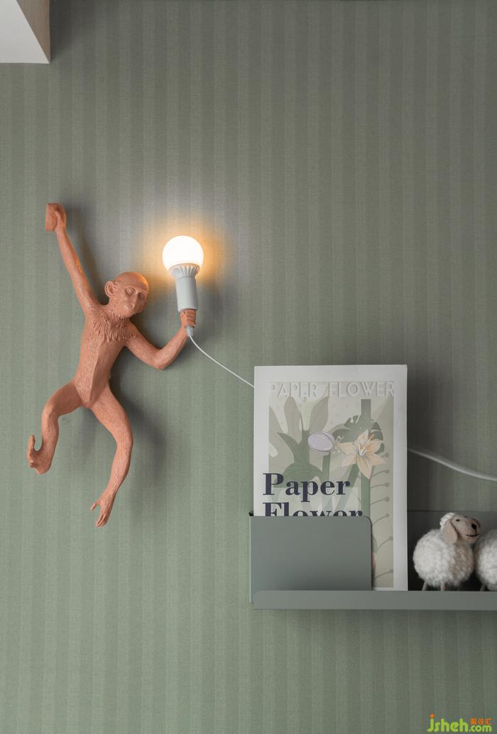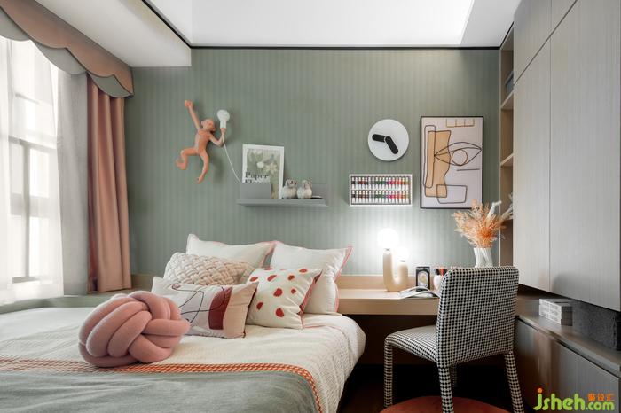 兒童房溫馨爛漫的粉色橘色與青色邊界分明,產(chǎn)生鮮明的對比和活躍的生命力。