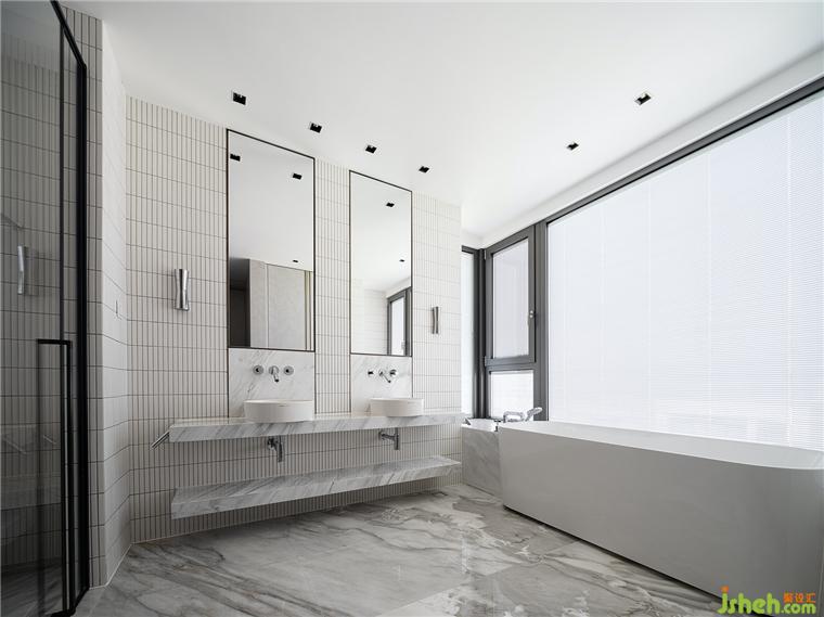 主臥里配套設置了衛(wèi)生間,開放的洗漱區(qū)能承載更多的功能性,細心的豪宅設計讓一切緊湊卻不擁擠。橫平豎直的線條,仿佛在訴說著一個干凈利落的空間故事。