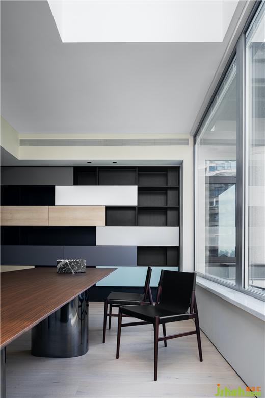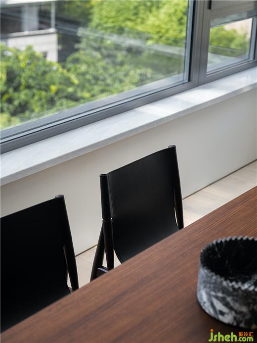 步入茶室,豪宅設計師刻意以現代主義去改變傳統(tǒng)茶室一貫的含蓄與靜默,以大面積陣列的落地開窗尺度,突破傳統(tǒng)窗景幽微的采光樣貌;以素靜的白色墻面為底,修長簡潔的茶席像慢慢展開的一幅長卷,古老的美學在追求純粹的現代設計中卸下了包袱。