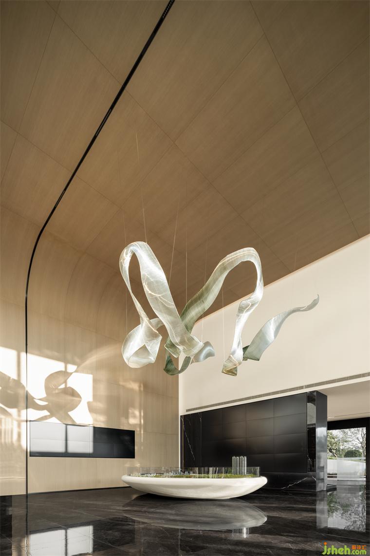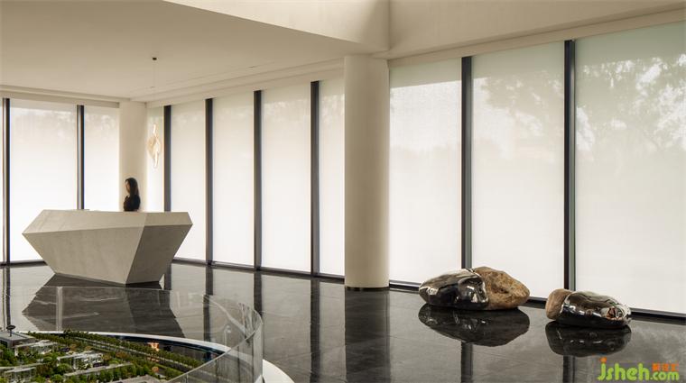 層層鱗浪隨風(fēng)而起,伴著跳躍的陽光。陽光透過屏風(fēng),懶懶地落在沙發(fā)上。營(yíng)銷中心設(shè)計(jì)水波紋效果的玻璃,仿佛來到湖面,觀那遼闊的風(fēng)平浪靜,心也不知不覺沉靜下來?!办o如水,淡如山”,是一種雋永的追求。