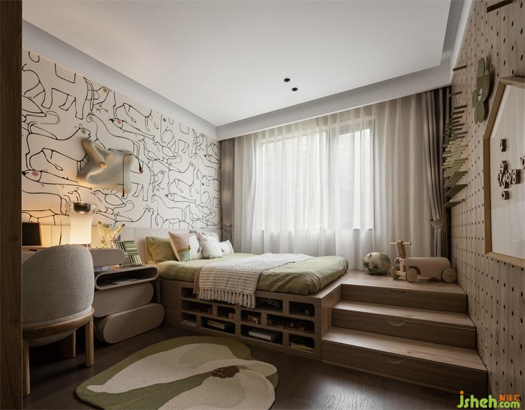 兒童房的設(shè)計在簡約現(xiàn)代的風(fēng)格基礎(chǔ)上將東方經(jīng)典元素提煉、蘊藏在各個細節(jié)之中,長沙樣板間設(shè)計并運用明亮的色調(diào)與卡通元素,為孩童構(gòu)筑具有趣味性的活動空間。