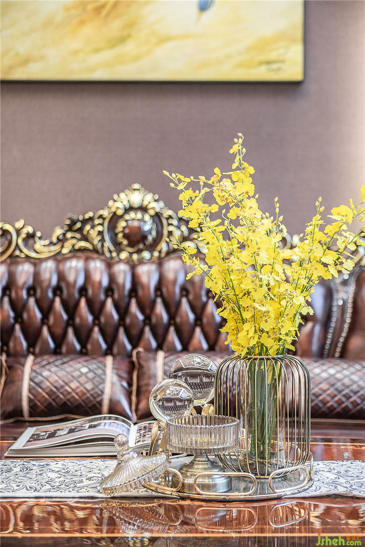木質樓梯,扶搖直上,水晶吊燈如瀑布,流曳一地春光。各種不同材質的家具飾品,墻面上、展柜里,各自驕傲著。也各自映照大宅的美。