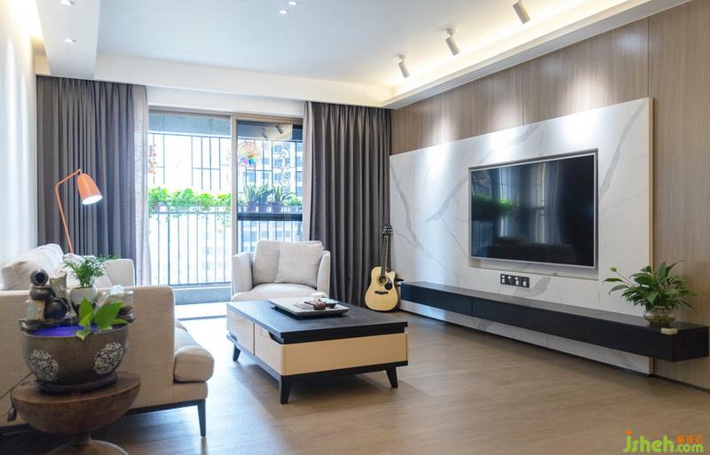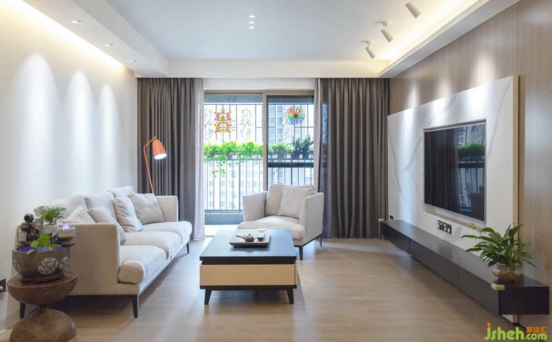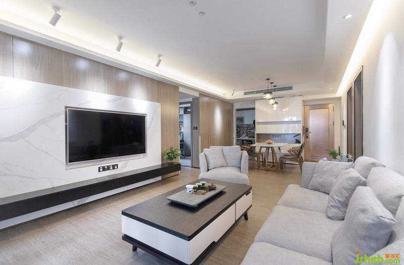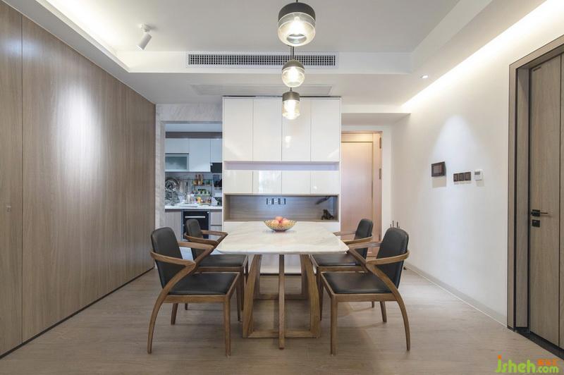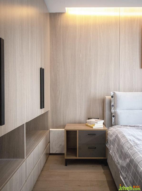 設計上,米白色作為全屋主要色調。選材上,以淺木色為主,為空間增添一份自然的溫暖氣息。