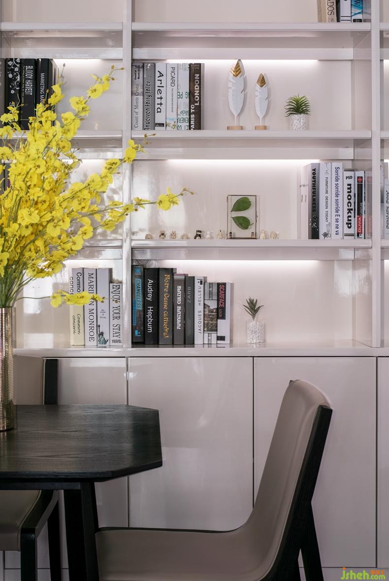 將入門(mén)的玄關(guān)空間同時(shí)劃分出閱讀工作的區(qū)域,書(shū)桌直接面向一扇接近兩米的窗戶(hù),敞亮溫暖的陽(yáng)光滲入,無(wú)疑是學(xué)習(xí)工作最好的區(qū)域,而別致線(xiàn)條的燈飾更是這個(gè)空間的一處亮點(diǎn)。