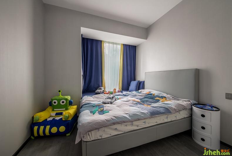 兒童房整體以灰調(diào)為主,與整屋的風(fēng)格相應(yīng)。而挑明一抹藍(lán)色的窗簾,選用藍(lán)與黃的搭配融入兒童房中,色彩鮮明的設(shè)計(jì)感更符合兒童成長(zhǎng)心智。別致的飄窗設(shè)計(jì),會(huì)是兒童休閑娛樂(lè)的一片新天地。