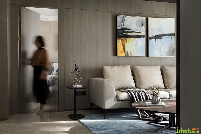 室內(nèi)設(shè)計師整體空間以麻灰色的大理石地磚、原橡木色的墻體鋪排,添上聯(lián)動窗簾控制、燈光控制、面板控制等智能家居,是簡約輕奢卻不失優(yōu)雅的裝飾風(fēng)格。