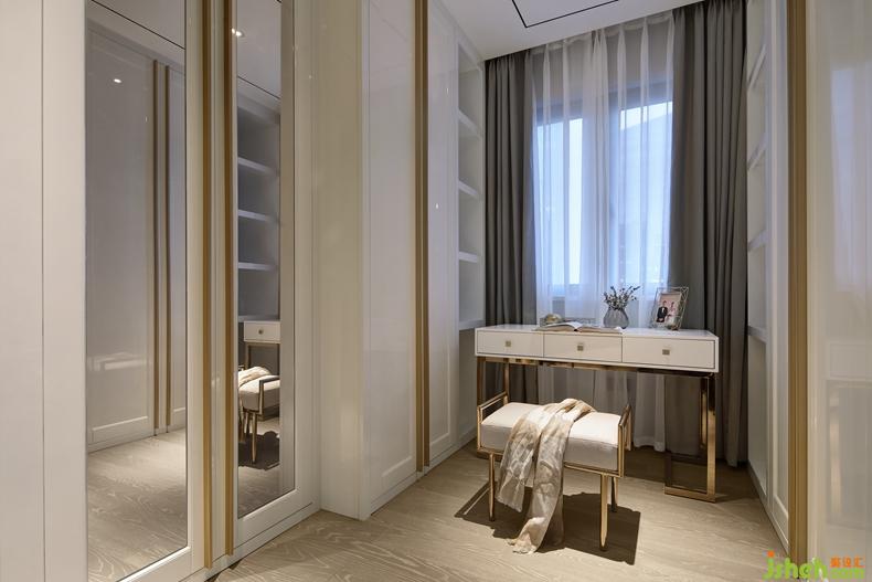 轉(zhuǎn)眼進(jìn)去的是主臥房的衣帽間,在設(shè)計(jì)上,室內(nèi)設(shè)計(jì)師除了能大量的收納放置衣物用品之外,還在靠窗邊的位置為華太設(shè)計(jì)了精美的梳妝臺(tái)。