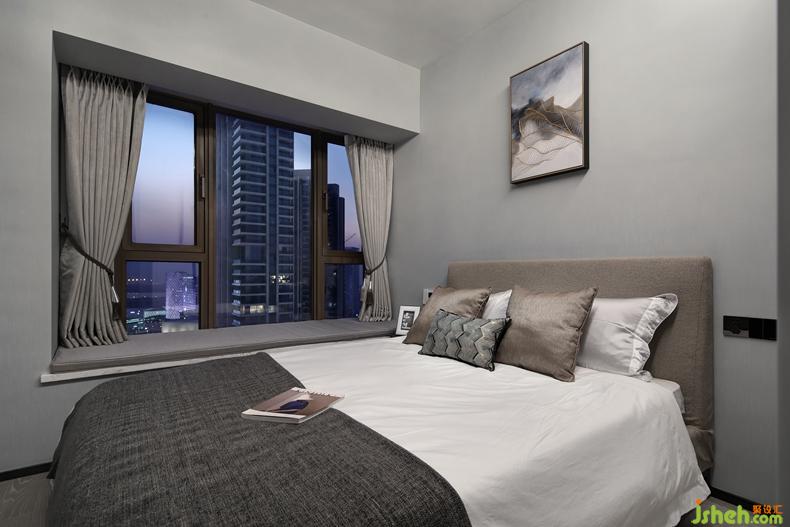 預(yù)留多了一間次臥室,同樣以灰調(diào)為主色的空間,安靜而舒適。透過(guò)大飄窗看見(jiàn)的一抹彩霞,也是一刻對(duì)生活的享受。