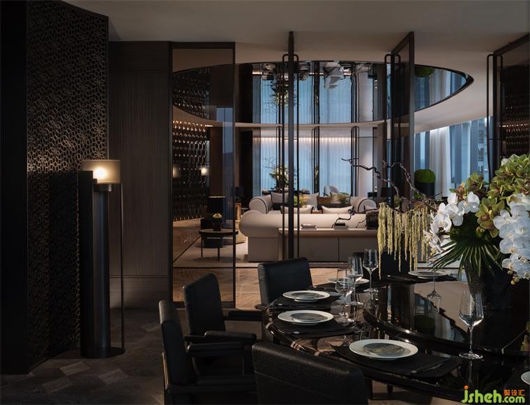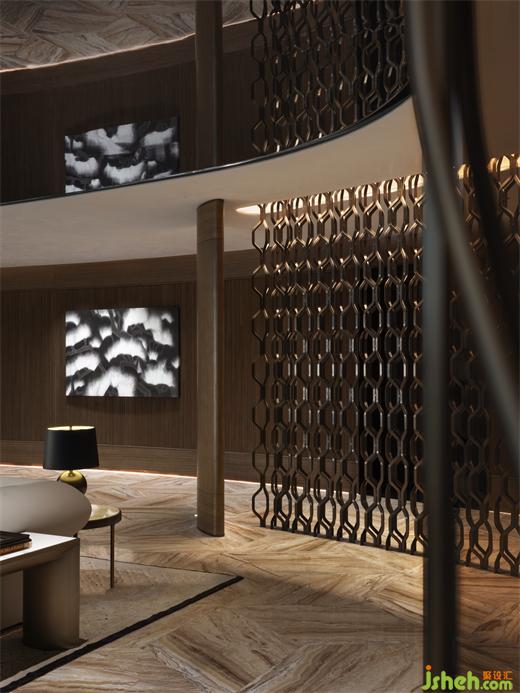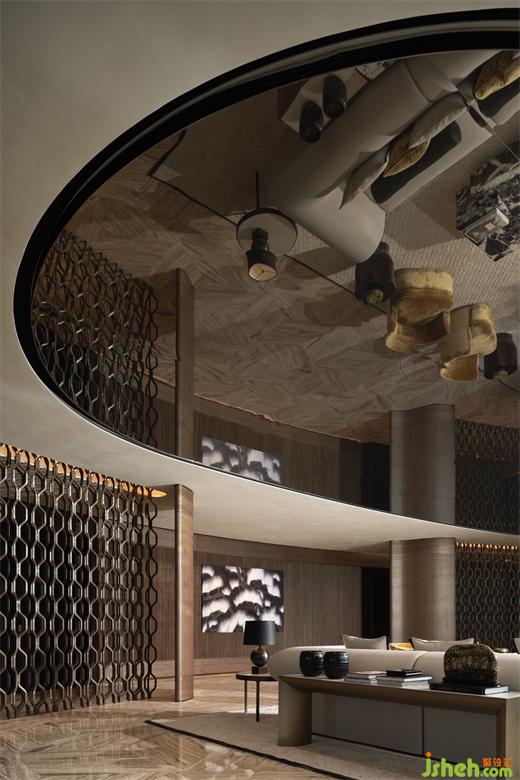 在郭子看來,“Parlor”介于公共與私密空間的交界處,或者游離于二者之外,是屬于主人的“自定義空間”,它是生活的轉(zhuǎn)場,社交的主場,在這里,或是品茗、嘗酒,或是洽談、雪茄,樣板房設(shè)計亦可容納中小型的會議、發(fā)布會,它容納著社交所需的不同功能,更讓對藝術(shù)的審美發(fā)生于其間。