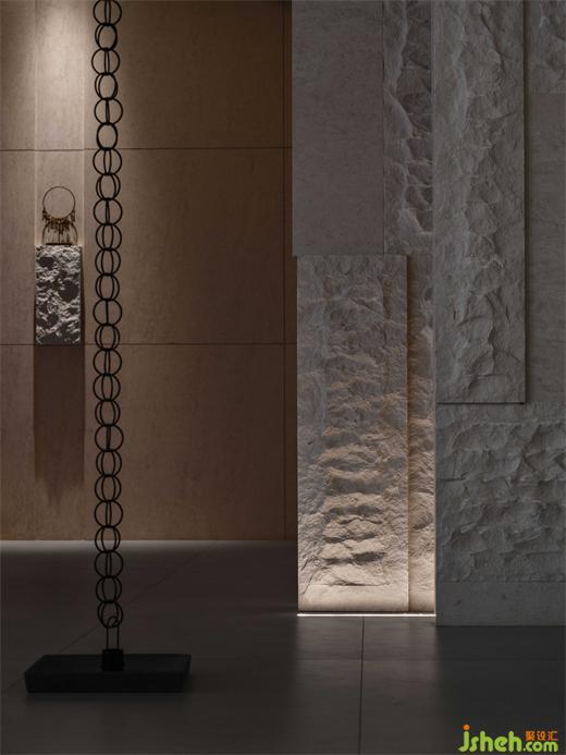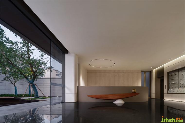 步入建筑之初,映入眼簾的便是一葉漂浮于湖面的扁舟。深色鏡面擬造“靜”態(tài)下的湖面,疊石青竹相映成趣,展現(xiàn)出一幅恬靜宜人的畫卷。將清新自然的景致引入室內(nèi)空間,締造充滿東方審美意蘊的藝術(shù)氛圍。