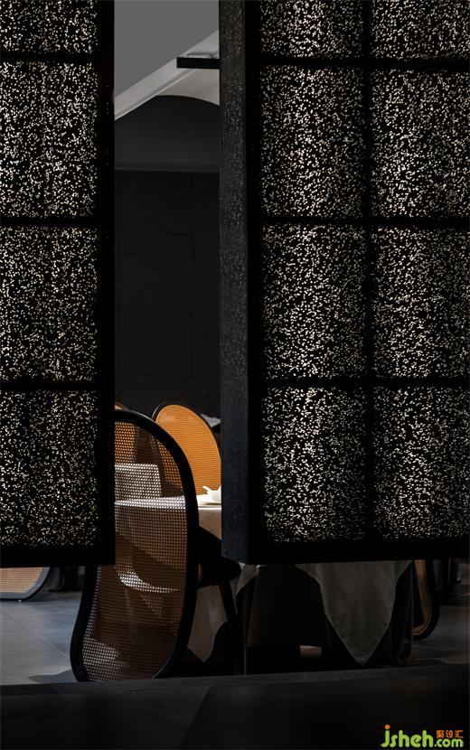 粵餐館設(shè)計(jì)師希望為現(xiàn)代都市人群打造一處別具一格的新場(chǎng)域,讓他們機(jī)會(huì)與自然遇見、與人遇見,雖置于匆忙的都市間,在步入序廳的那一刻,就有了抽離感。透過現(xiàn)代藝術(shù)的設(shè)計(jì)手法,將東方文化的核心精神融于空間,營造一個(gè)“近者欣喜,遠(yuǎn)者向往”的就餐環(huán)境。