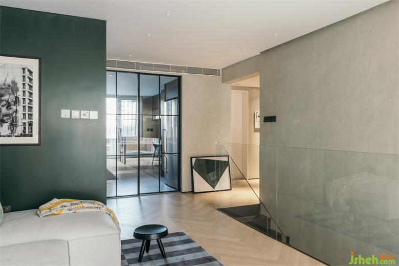 原本的格局中規(guī)中矩,包含一層和下沉層。設計師將原本的三個臥室改為兩個臥室,同時去掉了許多隔墻和室內(nèi)門,南京家裝設計使房子變得通透和開放,老式局促的兩代人居所搖身一變成為概念性極強的loft,不僅男女主人擁有了更多空間,還能讓狗狗自由地玩耍。
