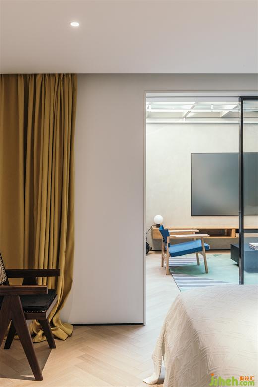 通過直跑樓梯就來到了下沉層,這里原本是整個房子的雞肋,現(xiàn)在卻成了他們最主要的生活空間,集影音、冥想、展示、睡眠等多重功能于一體,也是朋友們最喜歡的區(qū)域。南京家裝設(shè)計(jì)與一樓類似,這里無法用單一屬性去定義,像是話劇舞臺的布景,他們在移動間便能體驗(yàn)多樣人生,更像是嘉年華,處處都隱藏著驚喜。