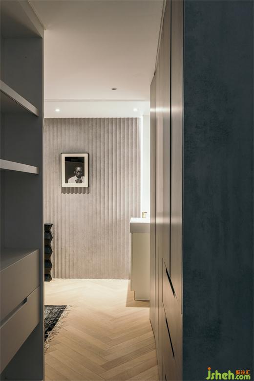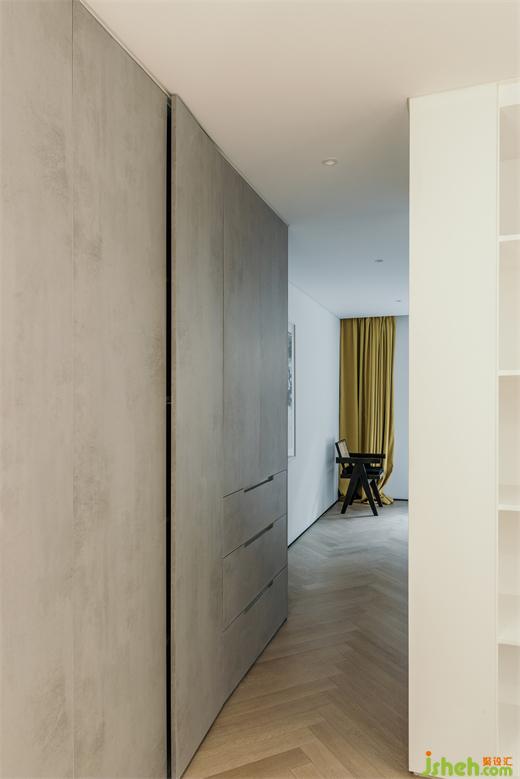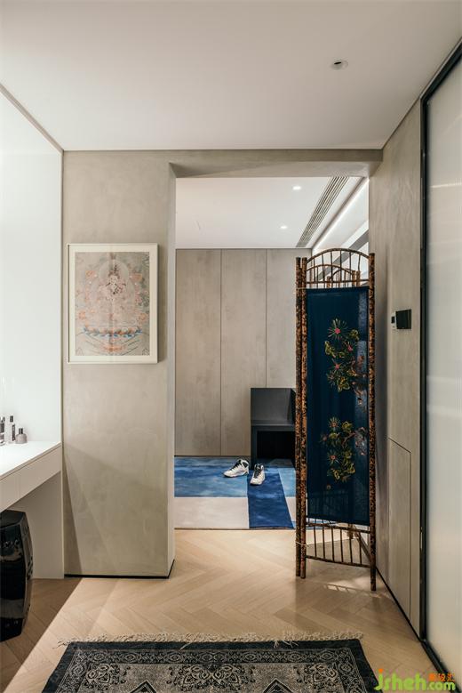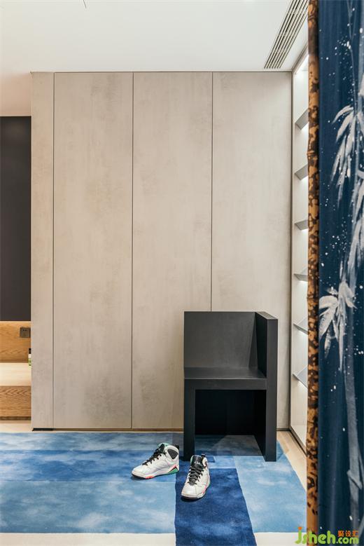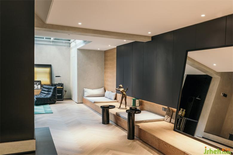除了儲(chǔ)藏間的門之外,下沉層沒(méi)有一扇傳統(tǒng)意義上的室內(nèi)門。南京家裝設(shè)計(jì)客廳和臥室之間只由玻璃推拉門隔開,平時(shí)都是開啟的狀態(tài),狗狗可以毫無(wú)阻礙地在這里跑上幾圈。