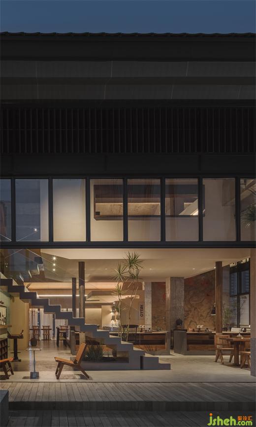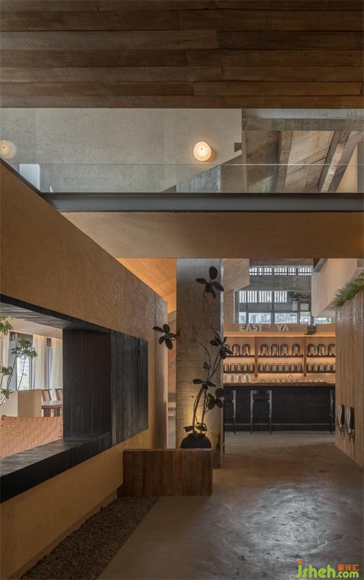 空間的不規(guī)則平面和體塊形態(tài)、非對稱的布局和形式、不斷變化的尺度和層次,以及光線和視線的運用,都為空間創(chuàng)造出了全新的錯位組合關系。這樣的設計特點不僅讓空間充滿了活力和動感,餐廳設計更為人們在其中生活、工作、學習等帶來了更多的創(chuàng)造性和驚喜。
