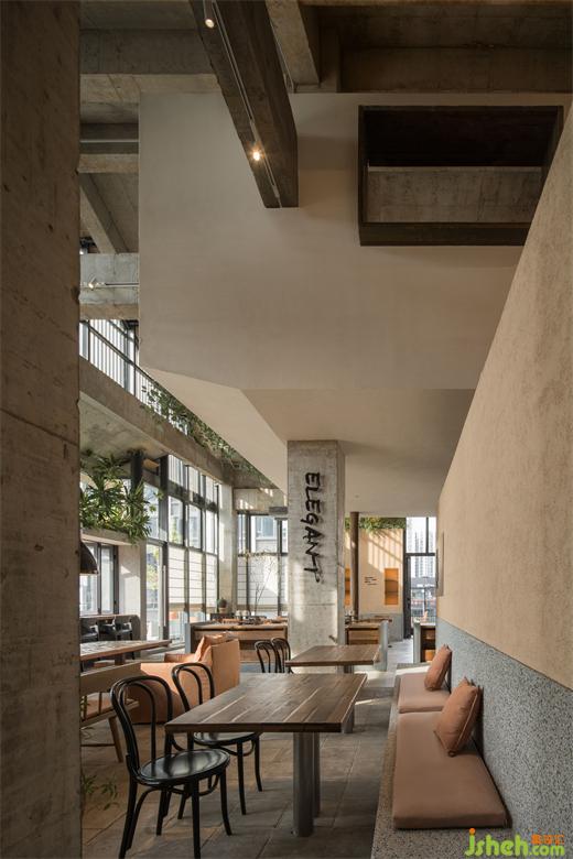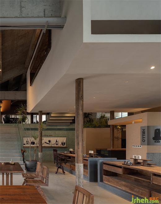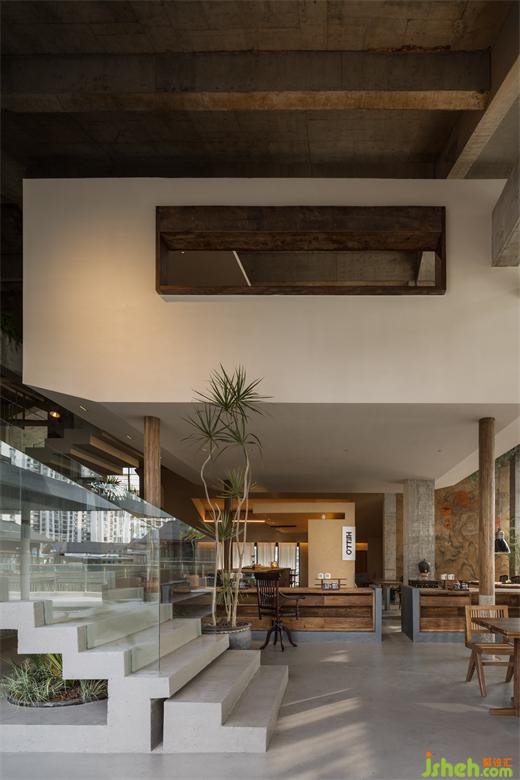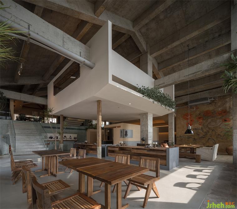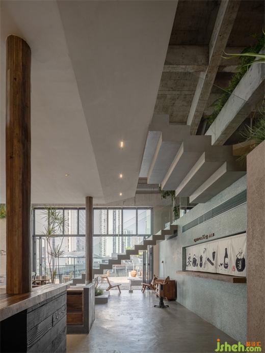 空間結(jié)構(gòu)呈現(xiàn)出了獨(dú)特的懸空盒子形態(tài),讓每一個空間都擁有了特殊的氛圍和功能,而嵌套的體量邏輯和路徑化的空間結(jié)構(gòu)則讓人們可以穿行于各個小空間之間。令人驚喜的布局和形態(tài)錯位,餐廳設(shè)計使得每一個觀察者在空間中行走和觀察時都能不斷地發(fā)現(xiàn)新的景觀和視角,從而激發(fā)了他們的好奇心和探索欲。此外,錯位的空間不對稱性和變化尺度也增強(qiáng)了空間的活力和生命力,讓人們在空間中感受到一種動態(tài)的氛圍。