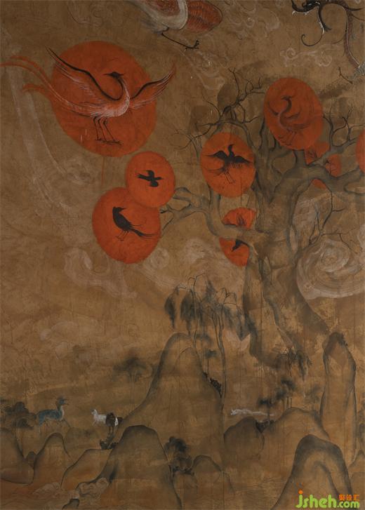 湯谷上有扶木,一日方至,一日方出,皆載于烏。湯谷上有扶桑,十日所浴,在黑齒北。居水中,有大木,九日居下枝,一日居上枝?!渡胶=?jīng)·大荒東經(jīng)》