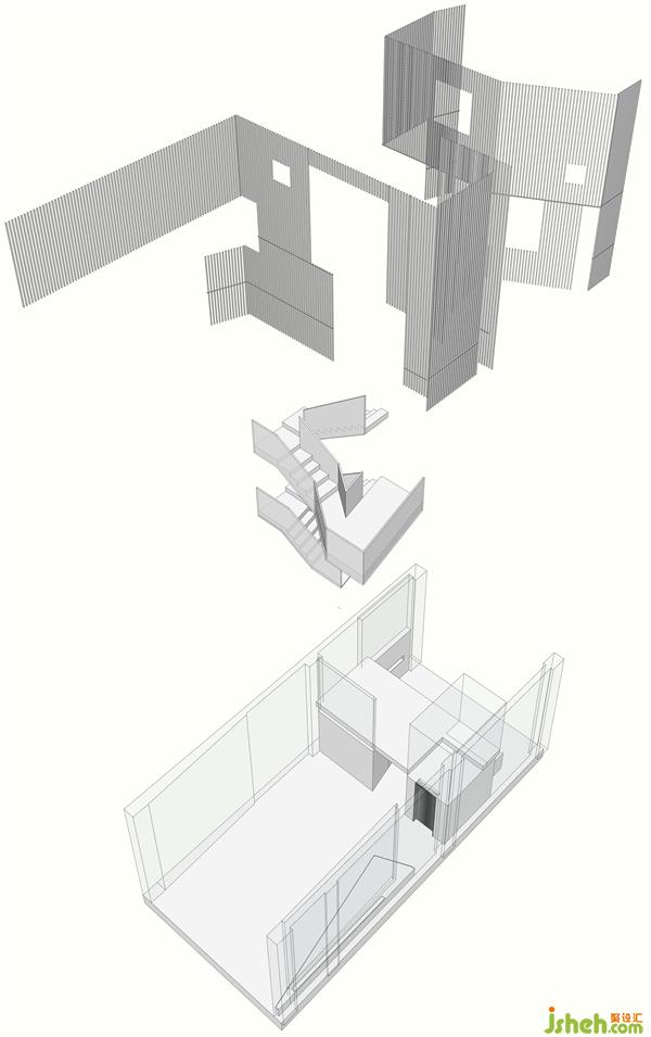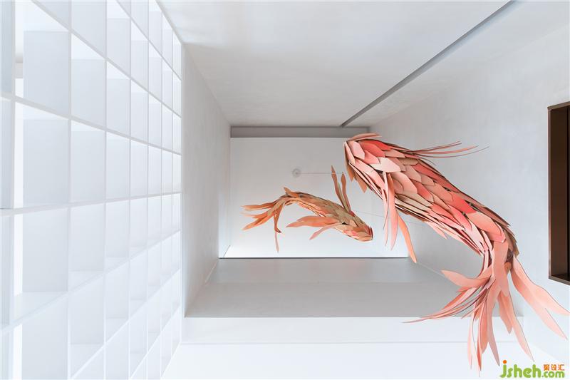 進(jìn)入設(shè)計的實質(zhì)階段,所遇最大障礙是空間太小,把所有功能全塞進(jìn)去,已無騰挪余地,若僅至此,則設(shè)計了無意趣,正膠著,突發(fā)靈感,用兒時的折紙游戲?qū)4紙又折、又疊又撕,但始終完整不斷,將橫向,縱向多個空間聯(lián)結(jié)一體,使人游走其間可交流,可互動,可停駐,可回望,仿佛一座立體的空中院落,通過對各空間功能性的消解,讓人可以輕松進(jìn)入一種放松和冥想的平靜狀態(tài),與事茗應(yīng)該是一種最理想的境界吧。