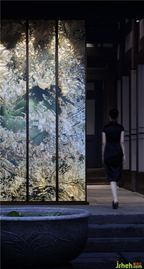 洽談區(qū)沙發(fā)背景的金屬裝置屏風(fēng),由縱向串聯(lián)的金屬片穿插連接,每一片都經(jīng)過精心的手工打磨,通過轉(zhuǎn)動單片的方向,構(gòu)成不同造型,整體塑造出不同走勢的山體造型,整體觀感極具東方韻味。所有的設(shè)計語言不在乎其形式,所在乎的是以人為本的概念,大到空間氛圍營造,小到每一件器物擺件,均能令觀者靜心體驗。
