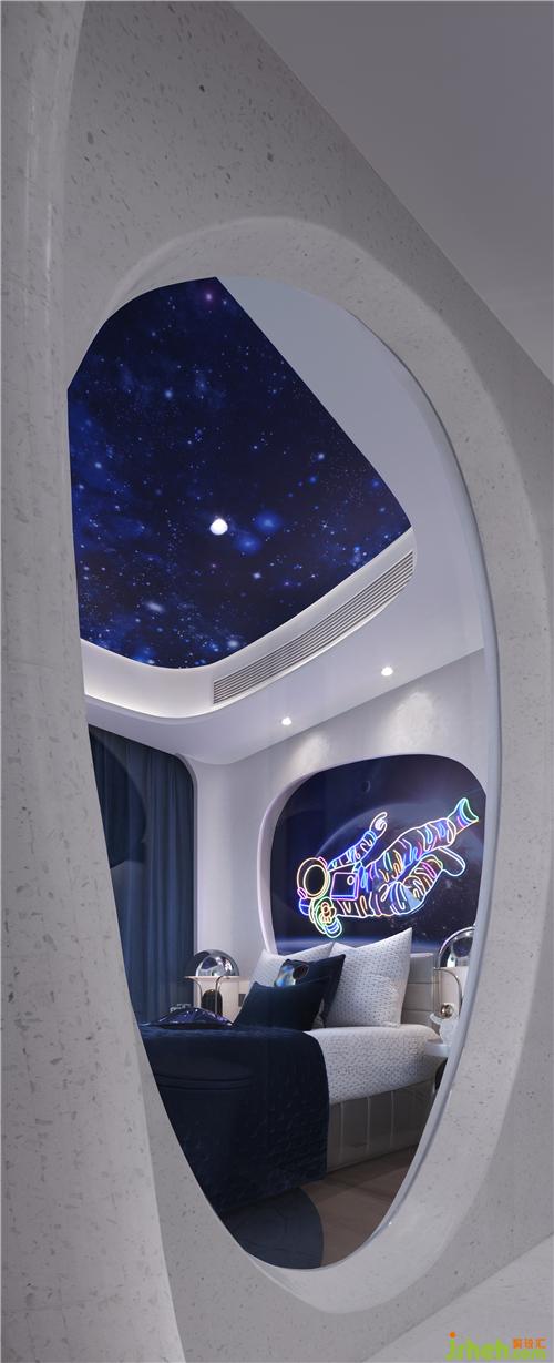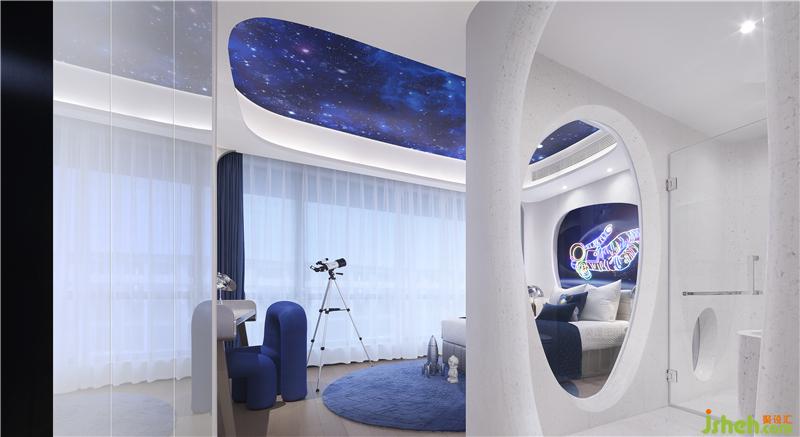 當(dāng)你抬頭仰望星空,夜的寂靜,像一盞孤燈,將銀河的星輝點(diǎn)燃。讓我們設(shè)想,在那些星星之中,有一顆引領(lǐng)我們的生命穿過未知的黑暗。太空總是引人遐想,將太空艙的造型融入到整體空間的設(shè)計(jì)中,通過不同的透景方式及聲光電的運(yùn)用,增強(qiáng)互動(dòng)和趣味性體驗(yàn)。