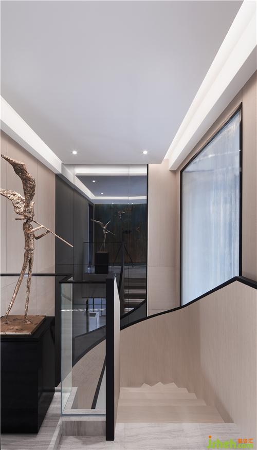 旋轉(zhuǎn)樓梯貫穿整體空間,猶如大型雕塑串聯(lián)著每層過(guò)廳的藝術(shù)品,產(chǎn)生趣味性的情景對(duì)話:晚色從陌生的樹(shù)木中走來(lái),成都樣板房設(shè)計(jì)像夜間的小路,正靜悄悄地聽(tīng)著回憶的足音?!按档焉倌辍痹谝惶?kù)o靜的吹奏,