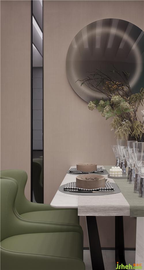 在自然的氣息中踩著輕松活力的節(jié)拍自由漫步。室內(nèi)空間使用大面積的木飾面,輔以高光通透灰色鏡面甩掉空間的壓迫感,再以明亮的綠、沉穩(wěn)的藍(lán)作為點綴之筆,刪繁就簡將自然元素融入空間之中,使整個空間生機(jī)盎然。