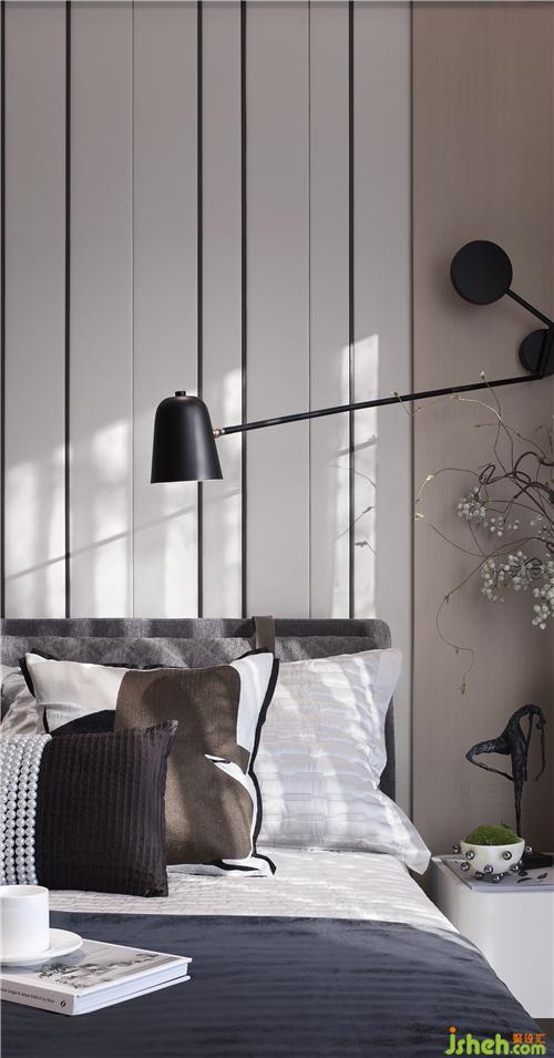 客臥采用簡單的線條木飾面做背景,簡約而不簡單,長沙樣板房設計窗簾與主臥采用統(tǒng)一色系,父母或朋友過來小住都非常合適。