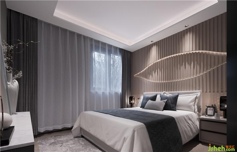 主臥色系和諧,背景墻獨特的造型讓整個空間沉穩(wěn)而不失靈動,現(xiàn)代感極強的家具簡潔而又時尚。為居者提供一個寧靜舒適的睡眠環(huán)境。