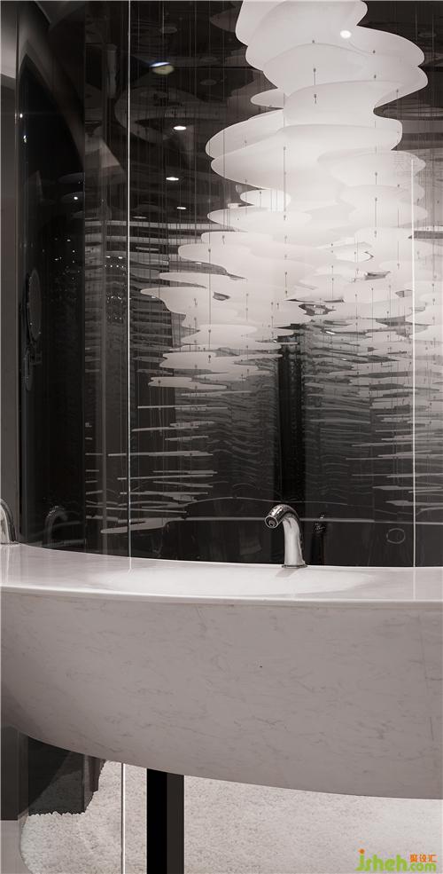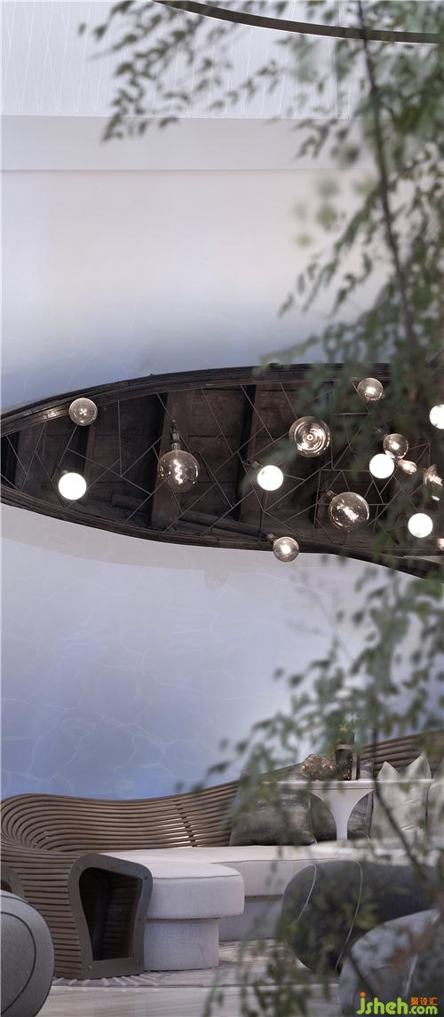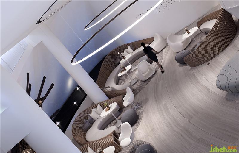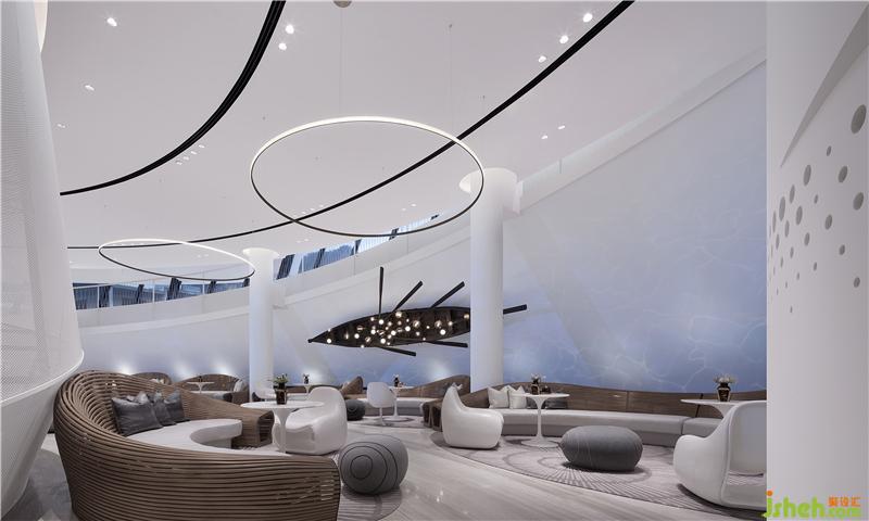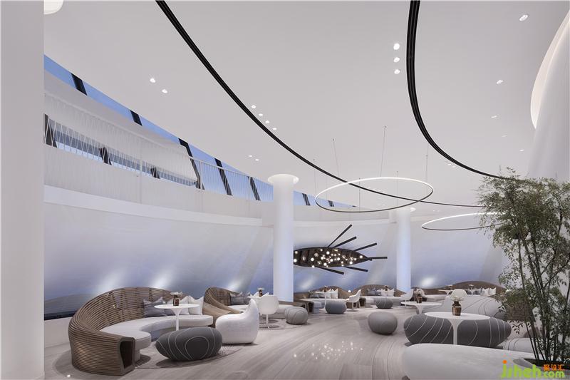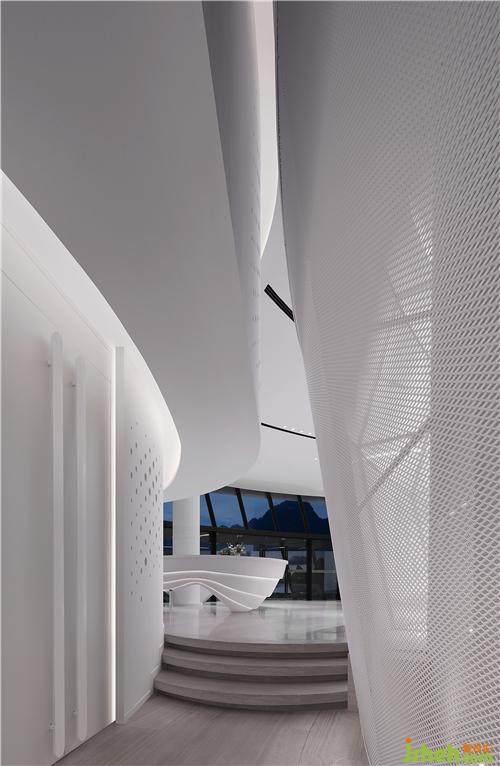 巨大的連接整個建筑上下層空間,銜接室內(nèi)空間和室外360度環(huán),陽朔山水景觀的環(huán)坡階梯,售樓處設(shè)計使參觀者拾級而上的整個過程,都能感受到充滿夢幻的喀斯特地貌景觀,并是將莫比斯環(huán)的設(shè)計邏輯在建筑上再一次宏觀重構(gòu)。