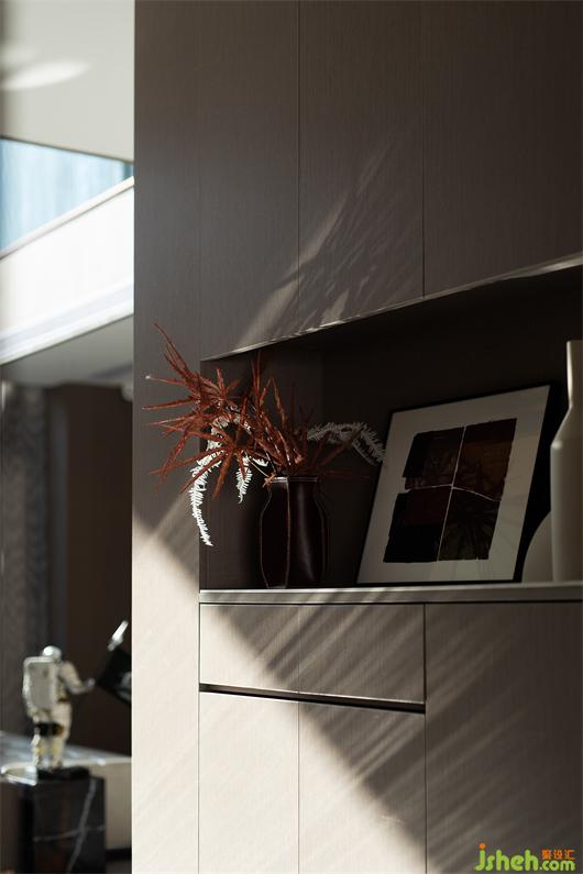 清晨一抹晨曦透過巨幅的落地玻璃窗灑入,樣板房設(shè)計讓整個空間頓時充滿一種夢幻的朦朧感。