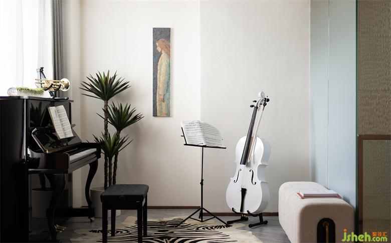 二層家庭廳,鋼琴的主旋律,吉他的和弦,他們哼唱著小調(diào),用音樂在闡述故事,用音樂在互動交流,盡享天倫之樂。
