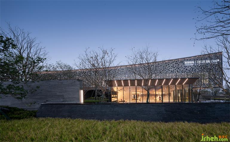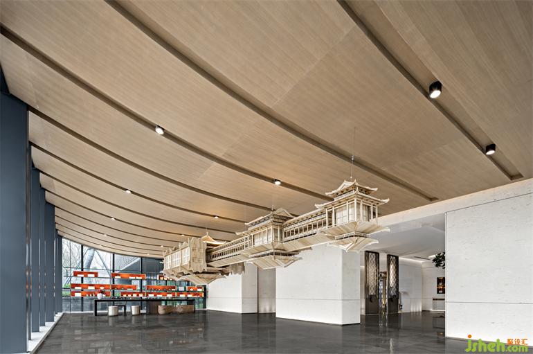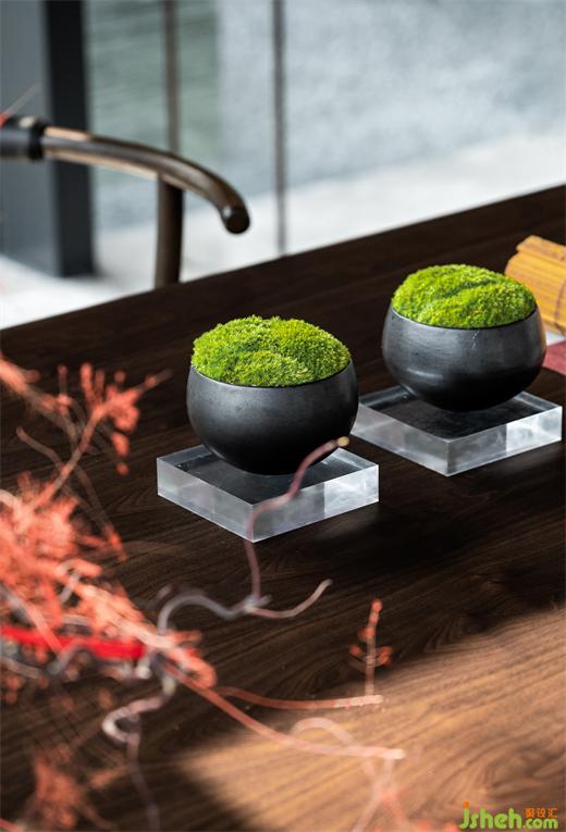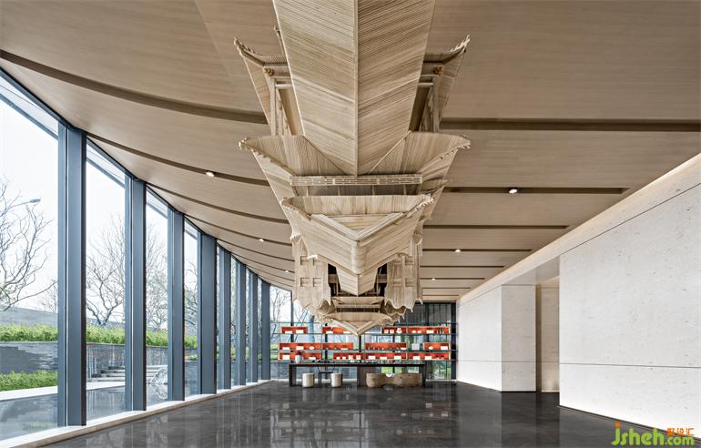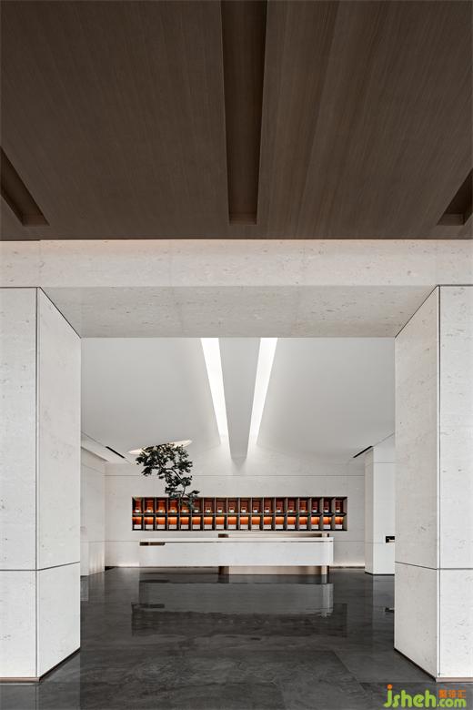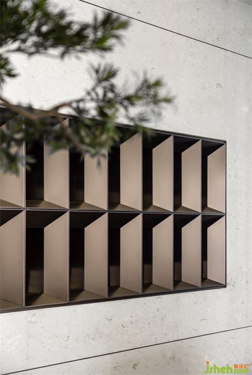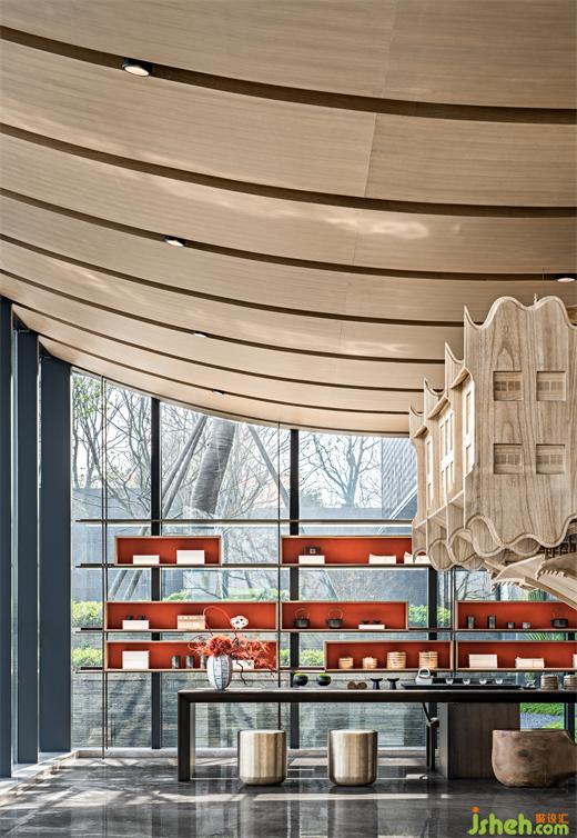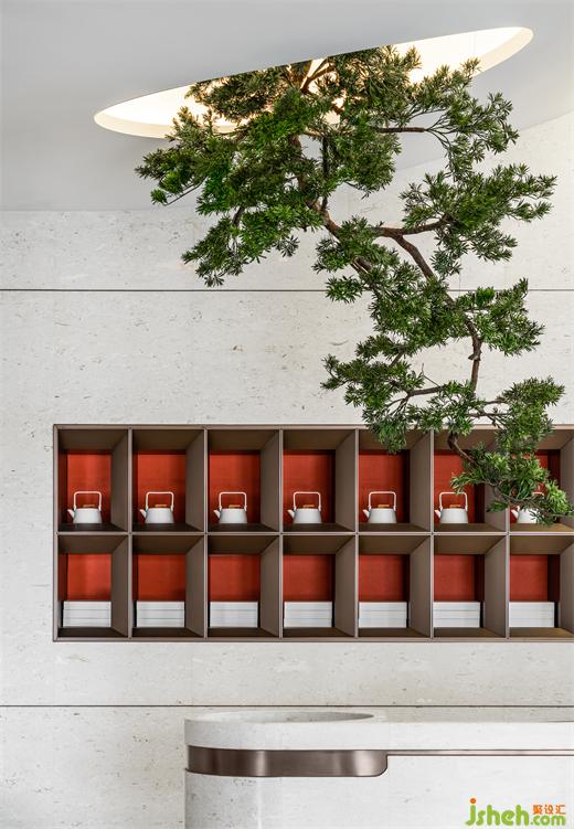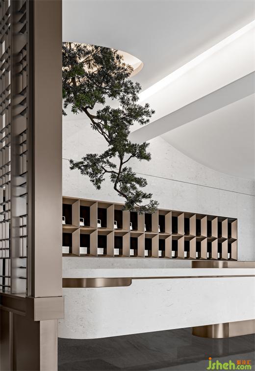 漫步入內(nèi),長(zhǎng)沙售樓處設(shè)計(jì)以松為記,寓意“迎客”,號(hào)曰《岳麓松風(fēng)》。”