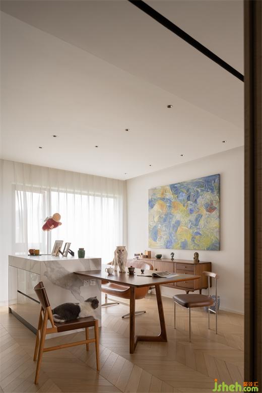 這種對(duì)記憶的喚醒,讓人充滿了深層的家的安頓感。深圳全案設(shè)計(jì)同時(shí)表皮用材和造型的抽象克制,又不至讓人因?yàn)殡[喻物的具體意義而分散注意力,它給你的只是一種感覺 ,說不清是什么,但你認(rèn)得它。