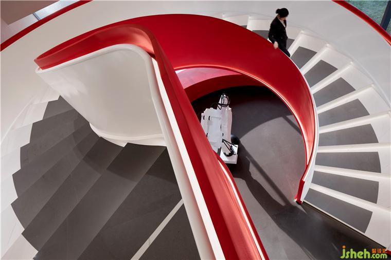 沙盤上方的主吊燈,洽談區(qū)的地毯圖案,甚至水吧和樓梯的造型都來自同一個設(shè)計語言,售樓處設(shè)計從音符中衍生出的優(yōu)美曲線,互相呼應(yīng)。