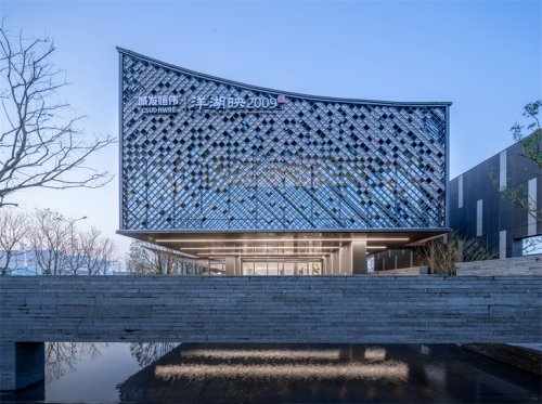 玄關(guān)處的幾何條索折板和絲帶造型的結(jié)合裝置,靈感來自于三宅一生發(fā)布的最新面料設(shè)計(jì),未來、朋克中帶著濃烈的東方和希望感。