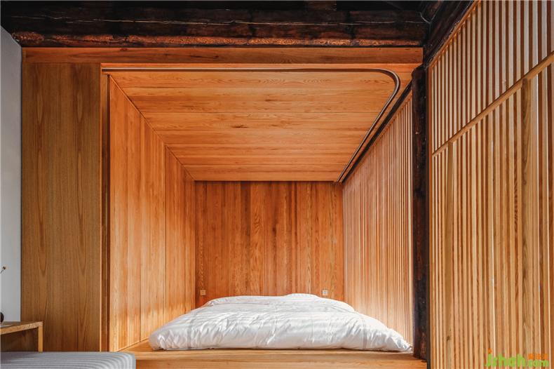 小院兒的使用主要作為城市公共活動空間,同時也保留了居住的可能性。別墅裝飾四間房屋可被隨時租用來進行休閑、會談、聚會等公共活動;同時也可以做為帶有三間臥室的家庭旅舍。別墅裝飾整合式家具用來滿足空間場景的這種彈性切換。東西廂房在原有木框架下嵌入了家具盒子。木質(zhì)地臺暗藏升降桌面,既可作為茶室空間,別墅裝飾也可以作為臥室來使用。北側正房也設有翻床家具墻體和分隔軟簾,同樣可以滿足這種多用需求。