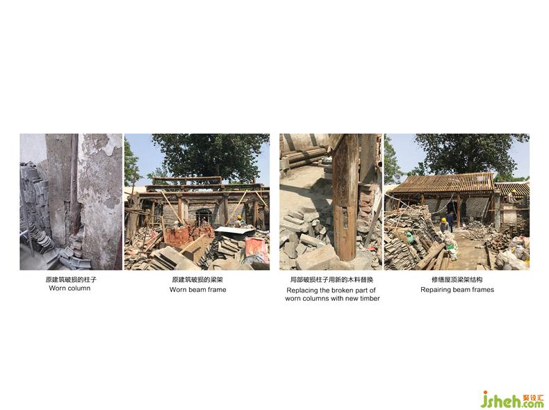 七舍合院位于北京舊城核心區(qū)內(nèi),院子占地寬約15米,長(zhǎng)約42米,是一座小型的三進(jìn)四合院。別墅裝飾由于原建筑共包含七間坡屋頂房屋,且正好是該胡同的七號(hào),故得名七舍。原始建筑年代較為久遠(yuǎn),別墅裝飾除了基本上還保持的木結(jié)構(gòu)梁柱和局部有民國(guó)特點(diǎn)的拱形門(mén)洞,其它大部分屋頂、墻面、門(mén)窗等都已經(jīng)破損或消失。院內(nèi)遺留了大量大雜院時(shí)期的臨時(shí)建筑,遍布清空之后的建筑廢料,雜草叢生、一片凋零。因此,本次改造設(shè)計(jì)一方面是修復(fù)舊的——對(duì)院落房屋進(jìn)行整理,保留時(shí)間迭代的印記,別墅裝飾修復(fù)各個(gè)建筑界面,加固建筑結(jié)構(gòu),重現(xiàn)傳統(tǒng)建筑的樣貌;另一方面是植入新的——新的生活功能配備(衛(wèi)生間、廚房、車(chē)庫(kù)等),新的基礎(chǔ)設(shè)施(水暖電設(shè)備管線(xiàn))以及新的游廊空間。新與舊相互疊合成為一個(gè)新的整體,來(lái)滿(mǎn)足未來(lái)院子作為公共接待和居住空間的使用要求。