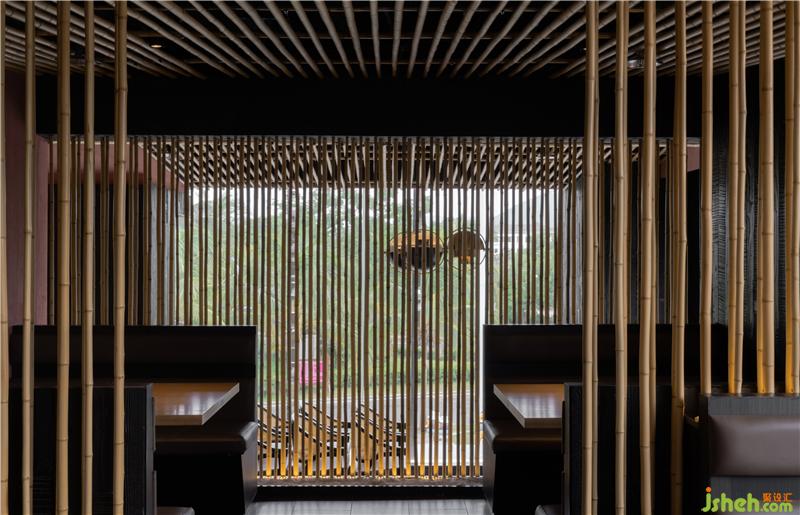 其實(shí)對于一個(gè)設(shè)計(jì)哲學(xué)來說,空間的大小并不能限制人們對自然環(huán)境的渴望。所以在餐廳的設(shè)計(jì)當(dāng)中,不僅僅是用了自然的竹子的元素,還有把自然的光線透進(jìn)來,那么通過很小的手法這個(gè)空間的感覺完全被改變了。