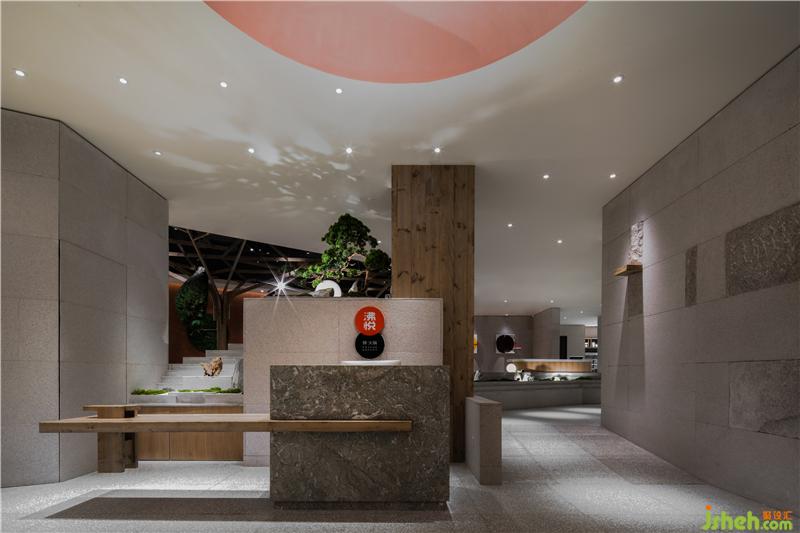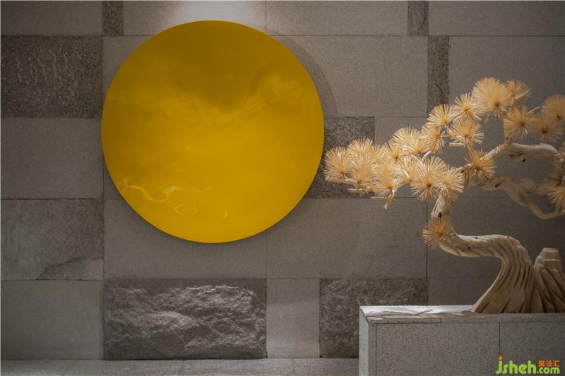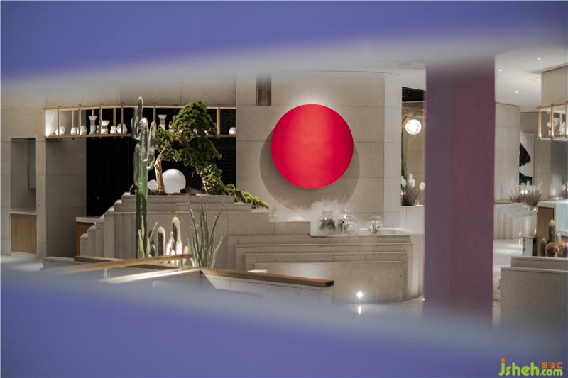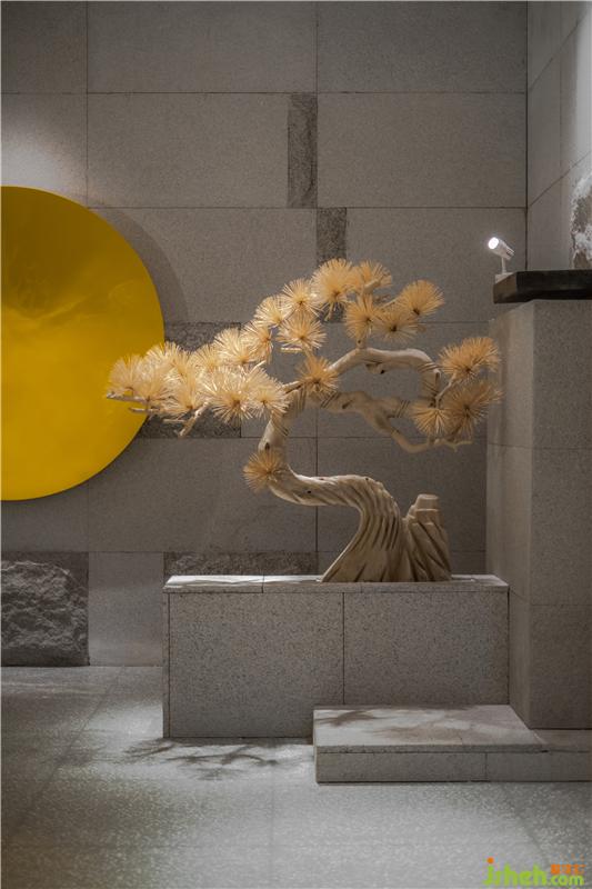 入口大廳的縱橫疊落,張弛有度,枯石,綠苔,景樹,靈動志趣。幾分精致和靜謐則造出一個匯聚格調(diào),人文,品質(zhì)的動人光景。天花的煙粉色的圓拱天花與墻面明黃的圓形藝術(shù)裝置,交相輝映,恰是淡雅清幽之中,驚醒的那一抹嫣紅。整個餐廳設(shè)計空間架構(gòu)引入內(nèi)置庭院元素,以重疊、并置的線條隔斷和重新分配空間,結(jié)合麻石等戶外材料在不同分區(qū)間隔中進行造景。質(zhì)樸的材料和統(tǒng)一有序的結(jié)構(gòu)層次,并發(fā)掘各種交接的可能性。細節(jié)中的每個線條、轉(zhuǎn)角位和收口上都經(jīng)過了特殊設(shè)計處理,每個功能隔斷被設(shè)計師重新詮釋,通過藝術(shù)裝置引導(dǎo)空間動線,步移景異。