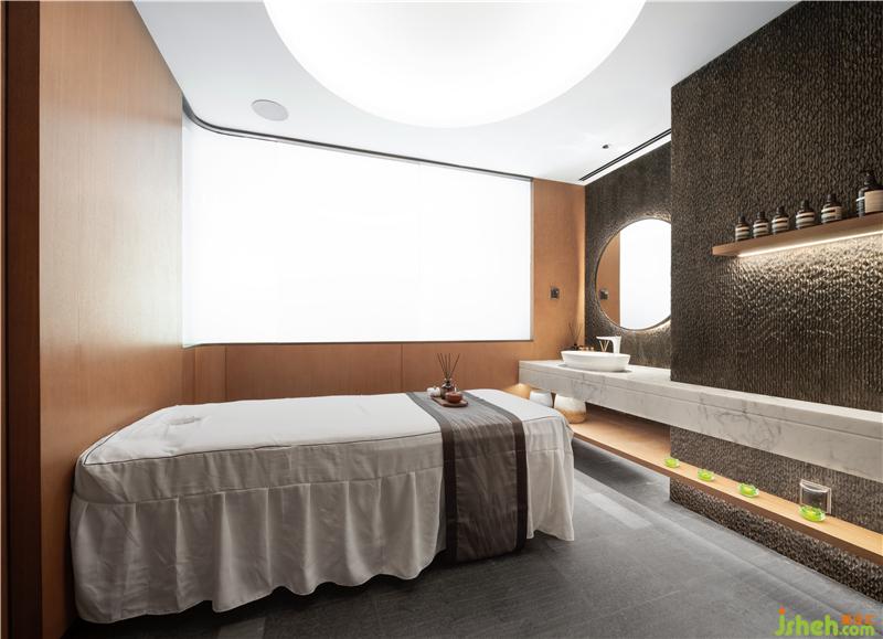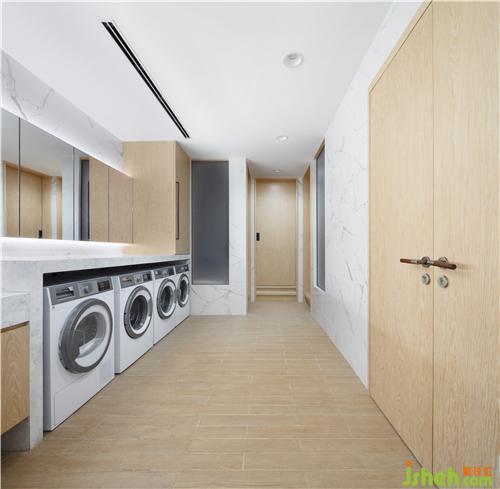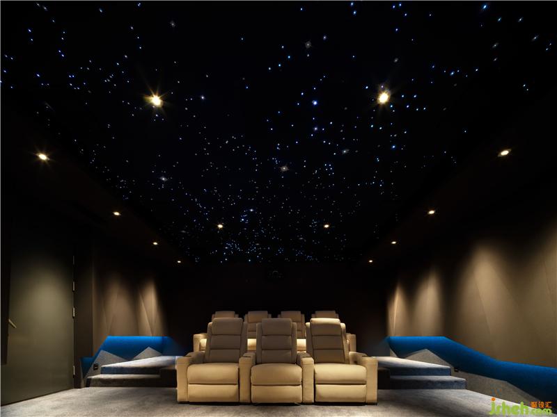 穿過兩扇玻璃飾面天地軸的大門,仿佛進(jìn)入了另一個空間。有一種峰回路轉(zhuǎn)的感覺。整個空間剛毅硬朗,體現(xiàn)了主人的品味與調(diào)性。泳池藍(lán)色的馬賽克給整個空間增添了活躍的氣氛。此空間的亮點(diǎn)是費(fèi)勁周折才得以實(shí)現(xiàn)的五個采光天窗,把天光引入室內(nèi)使空間馬上多了了一份靈動,加強(qiáng)光線在空間中的流動,日光傾瀉在清透的水面上,光影在室內(nèi)多了層溫柔濾鏡。泳池休息區(qū)墻面滿布的綠植仿佛使人與大自然有了一個親密的接觸。陽光、綠植,可見設(shè)計(jì)師的用心良苦。簡明的體塊感結(jié)構(gòu)配合暖調(diào)的鐵刀木飾面體現(xiàn)了空間的簡潔和張力?;馃疵娴暮谏呐c毛石搭配莊重而神秘,整體材質(zhì)統(tǒng)一且考慮到時(shí)間的流逝后歷久旎新。別墅裝飾