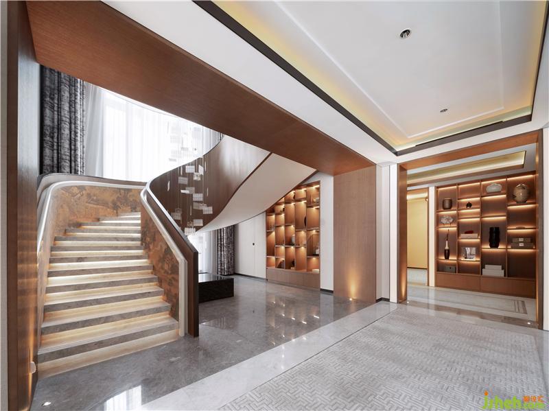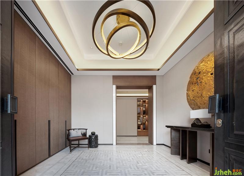 空間以中庸極致主義風(fēng)格貫穿始終。轉(zhuǎn)折與空間遞進(jìn)是一層設(shè)計(jì)的精妙所在,門廳地面的石材拼花、現(xiàn)代中式風(fēng)格的木質(zhì)格柵屏風(fēng)、應(yīng)用的都恰到好處,處處流入出設(shè)計(jì)師對傳統(tǒng)文化的情有獨(dú)鐘。