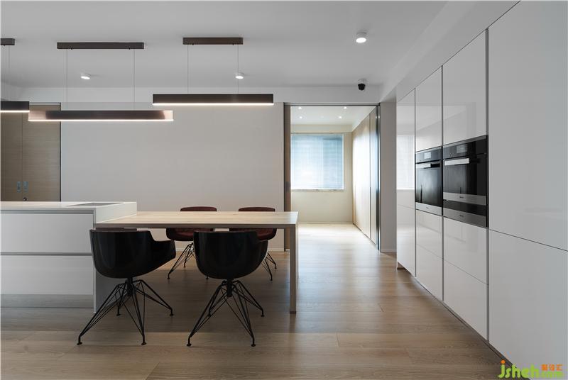 4,項(xiàng)目定位:業(yè)主要求光線要早午晚都需要自然采光,原戶型不合理的隔墻完全拆除掉,作為一名音樂(lè)發(fā)燒友,所有設(shè)計(jì)師打破對(duì)客廳的傳統(tǒng)認(rèn)知,將客廳打造成私人專屬KTV,真正的會(huì)客區(qū)與辦公區(qū)餐廳區(qū)融為一體,成為多功能的社交廚房。室內(nèi)與自然完全融合,功能與美觀高度統(tǒng)一。歸去來(lái)兮,與自然對(duì)話,回歸自然,體現(xiàn)自我性格。