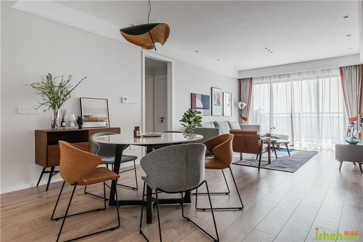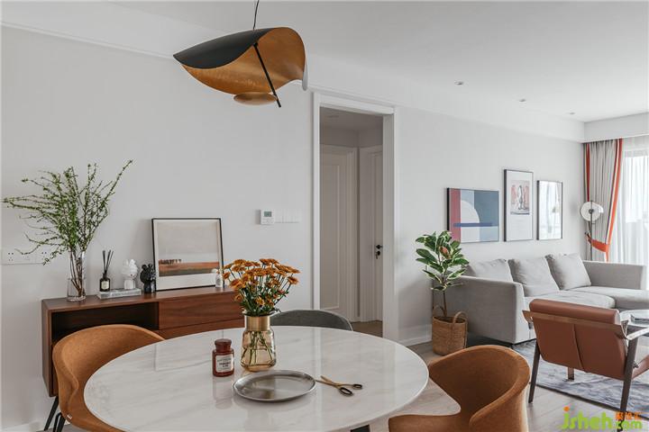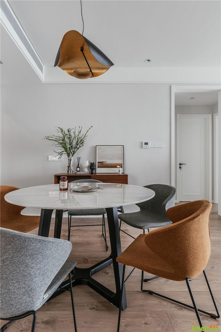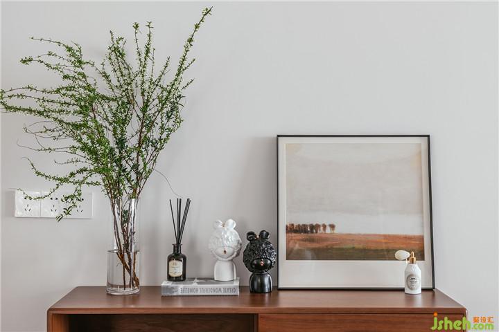整體設(shè)計(jì)以現(xiàn)代簡(jiǎn)約+北歐風(fēng)格進(jìn)行發(fā)揮,空間主格調(diào)定義為“精簡(jiǎn)、休閑、時(shí)尚、亮麗、自然”幾個(gè)關(guān)鍵詞,期望營(yíng)建一個(gè)賞心悅目、輕松舒適的優(yōu)質(zhì)居所。硬裝從簡(jiǎn),從玄關(guān)延伸至客餐廳墻面的涂裝板造型,其中暗設(shè)了主臥隱形門與隱形儲(chǔ)物柜。全房定制柜體的收口、空調(diào)百葉的處理以及衛(wèi)生間淋浴區(qū)、飄窗臺(tái)大理石等做法細(xì)節(jié)都力求極簡(jiǎn)并體現(xiàn)品質(zhì)。空間設(shè)計(jì)的重點(diǎn)和亮點(diǎn)在于軟裝設(shè)計(jì),例如材質(zhì)、圖案、色彩、家具、陳設(shè)、布藝、花藝的選配控制。在硬裝界面質(zhì)感色調(diào)都比較光滑平淡的前提下,軟裝設(shè)計(jì)在各區(qū)域的裝飾搭配上尋求變化與層次。