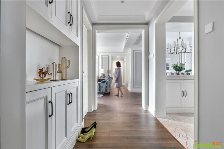 設(shè)計(jì)定位為現(xiàn)代美式風(fēng)格,整體設(shè)計(jì)遵循簡(jiǎn)潔、硬朗、淡雅、沉穩(wěn)兼跳躍、活潑的主基調(diào),采取中灰度弱對(duì)比的搭配,選材都強(qiáng)調(diào)突出亞光質(zhì)感和原木品質(zhì)。平面布局略做調(diào)整,創(chuàng)造出一開(kāi)門(mén)即大開(kāi)間的通透視野,滿(mǎn)足了入戶(hù)左邊的內(nèi)嵌鞋柜。把廚房小陽(yáng)臺(tái)包進(jìn)中廚加長(zhǎng)操作臺(tái),進(jìn)而解放了入戶(hù)右邊區(qū)域,增加了水吧區(qū)和陳列柜,滿(mǎn)足了日常最頻繁的燒水喝水以及儲(chǔ)放杯子茶葉。餐廳區(qū)域增加了兩邊陳列柜,也是為存放食材而準(zhǔn)備。取消一間臥室,將其與主臥連通形成主臥套內(nèi)衣帽間。全房地面均為進(jìn)口品牌強(qiáng)化復(fù)合地板,客廳墻面為木飾面結(jié)合PU線(xiàn)條飾白漆搭配進(jìn)口品牌有色乳膠漆,其它房間墻面均為進(jìn)口品牌有色乳膠漆,搭配不同顏色的木器漆的實(shí)木柜體或原木家具。任何裝飾都不讓生活加重,所有設(shè)計(jì)都能給生活減負(fù),一切所見(jiàn)都是如此日常又平常,不多也不少。