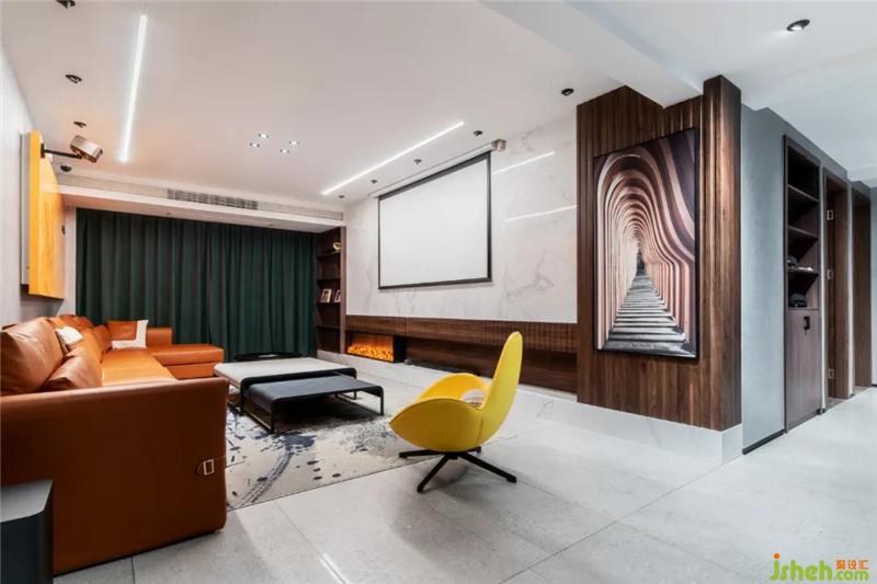 本案的服務模式為全案設計,設計者在體現(xiàn)現(xiàn)代極簡風格以外,呈現(xiàn)更多的是圍繞家庭成員的空間秩序與表達。家庭空間設計至始,都是一種不失品質的生活態(tài)度,而設計者所傳達的,也是追求簡單而安靜的生活方式。空間色彩搭配,讓室內元素更加融合,改變基調的單一性,打破常規(guī),呈現(xiàn)更具質感家裝。客廳由墻面質感的灰色,木作的胡桃色,布藝的墨綠色三色融合,看似簡單的設計其實是空間相交的減法,簡約的時尚。本案隨處都透著現(xiàn)代智能科技感的設計,投影儀代替電視,擴大了視覺空間,人工智能家居享受舒適便捷的生活。內嵌的壁爐設計與深沉的木色相撞,有股溫潤的暖流流淌至家人的心中。原本餐廳面積較小,于是將餐廳與客廳相連,擴大空間視覺,采用餐廚一體的方式,讓空間得到充分的利用,感受煙火氣息,更有品嘗美味的樂趣。設計者將自己對于生活的品質融入到作品中來。主臥室以墨綠色為主色調,搭配主題胡桃木色安穩(wěn)寧靜,黑白線條壁畫,更讓整個臥室空間整潔且不失雅致。臥室中沒有過多的陳設,從燈飾到床具都極為簡潔,但卻又不失格調,也許家的定義便是如此,簡單的美好。裝修公司